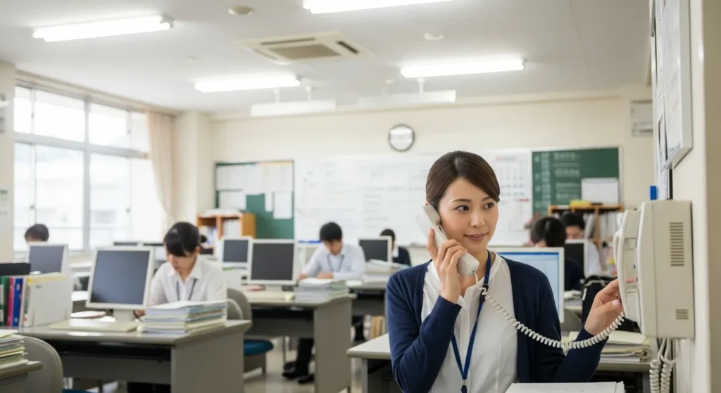 顔認証システムを導入することで、先生は「インターホンの音」に思考を中断されることなく、面談準備や生徒対応に100%集中することができます。